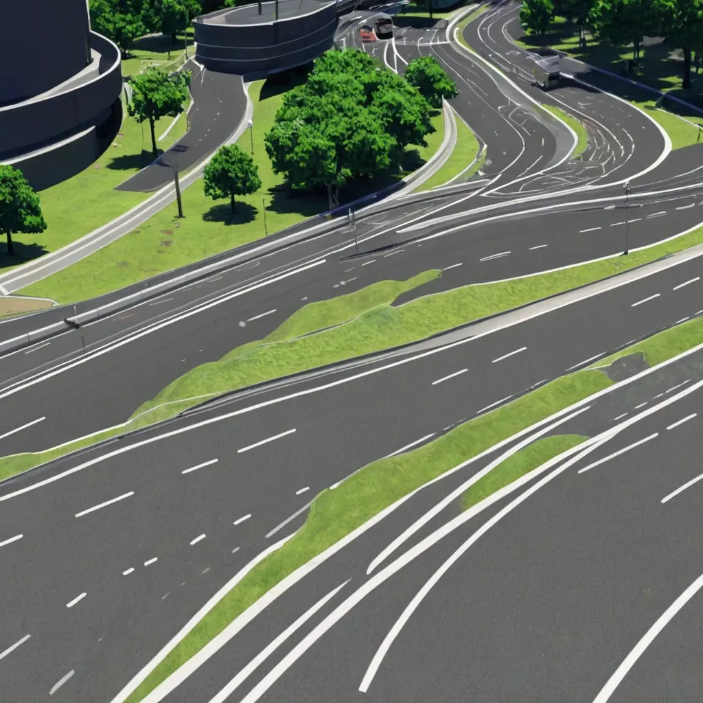 Пример 1: Проектирование дорожной развязки с использованием правил и шаблонов. За счет параметрического подхода инженеры смогли быстро адаптировать проект к изменению местных условий и требованиям по ширине полос движения.